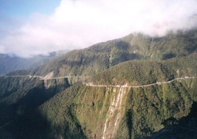 1. Bolivia’s “Road of Death” Nama jalan yang berada di Bolivia adalah North Yungas Road, jalan ini adalah jalan yang paling mengerikan di dunia. Kira-kira setiap dua minggu sekali akan terjadi satu kecelakaan fatal di jalan tersebut dan setiap tahun sekitar 200-300 orang meninggal di jalan yang panjang nya sekitar 80 km tersebut. Di tahun 1995, Inter-American Development Bank menamakan rute ini sebagai jalan yang paling berbahaya di dunia.